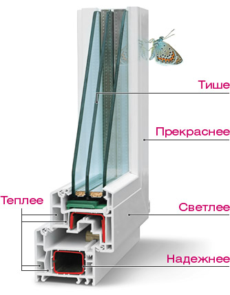 На теплоизоляционные свойства окон влияет не только стеклопакет, а также ПВХ профиль. Теплоизоляционные свойства профилей зависят от общей ширины профиля и от количества камер в нем. Сегодня чаще всего применяются трехкамерные профили шириной 58-62 мм.